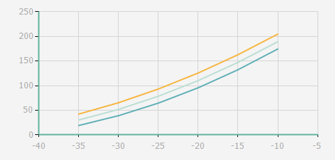 | 蒸發(fā)溫度 | 制冷量+/-5% | 能耗+/-5% | 現(xiàn)在能效+/-5% | 氣體流速+/-5% | 能效+/-7% | ||||