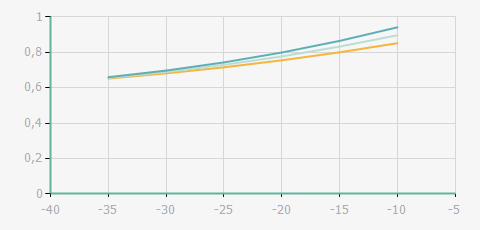 | 蒸發(fā)溫度 | 制冷量+/-5% | 能耗+/-5% | 現(xiàn)在能效+/-5% | 氣體流速+/-5% | 能效+/-7% | ||||