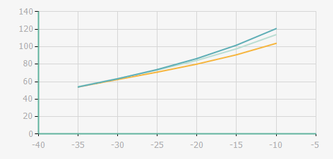 | 蒸發(fā)溫度 | 制冷量+/-5% | 能耗+/-5% | 現(xiàn)在能效+/-5% | 氣體流速+/-5% | 能效+/-7% | ||||
