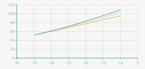 | 蒸發(fā)溫度 | 制冷量+/-5% | 能耗+/-5% | 現(xiàn)在能效+/-5% | 氣體流速+/-5% | 能效+/-7% | ||||